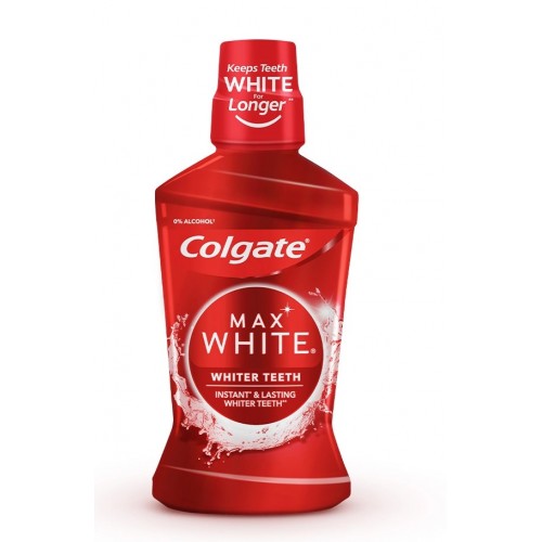 Klinik olarak test edilmiş Colgate® Max White™ ağız gargarası ile anında daha beyaz dişlere* kavuşun. Kanıtlanmış alkolsüz formülü, ışığı yansıtan benzersiz optik beyazlatıcılar içerir ve dişlerin anında daha beyaz görünmesini sağlar. *Anında beyazlatmanın geçici optik etkisi.